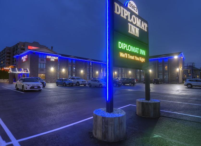 Diplomat Inn, Fallsview bölgesindeki 5983 Stanley Avenue adresinde konumlanmaktadır, Niagara Şelalesi şehir merkezine 0,2 km. Diplomat Inn noktasına en yakın kent simgesi: Skylon Tower.